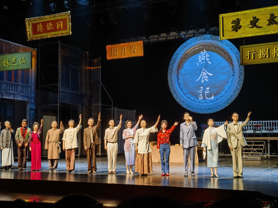 演員謝幕。5月21日至25日,話劇《燕食記》在國(guó)家話劇院劇場(chǎng)成功完成首輪演出。馬霞 攝