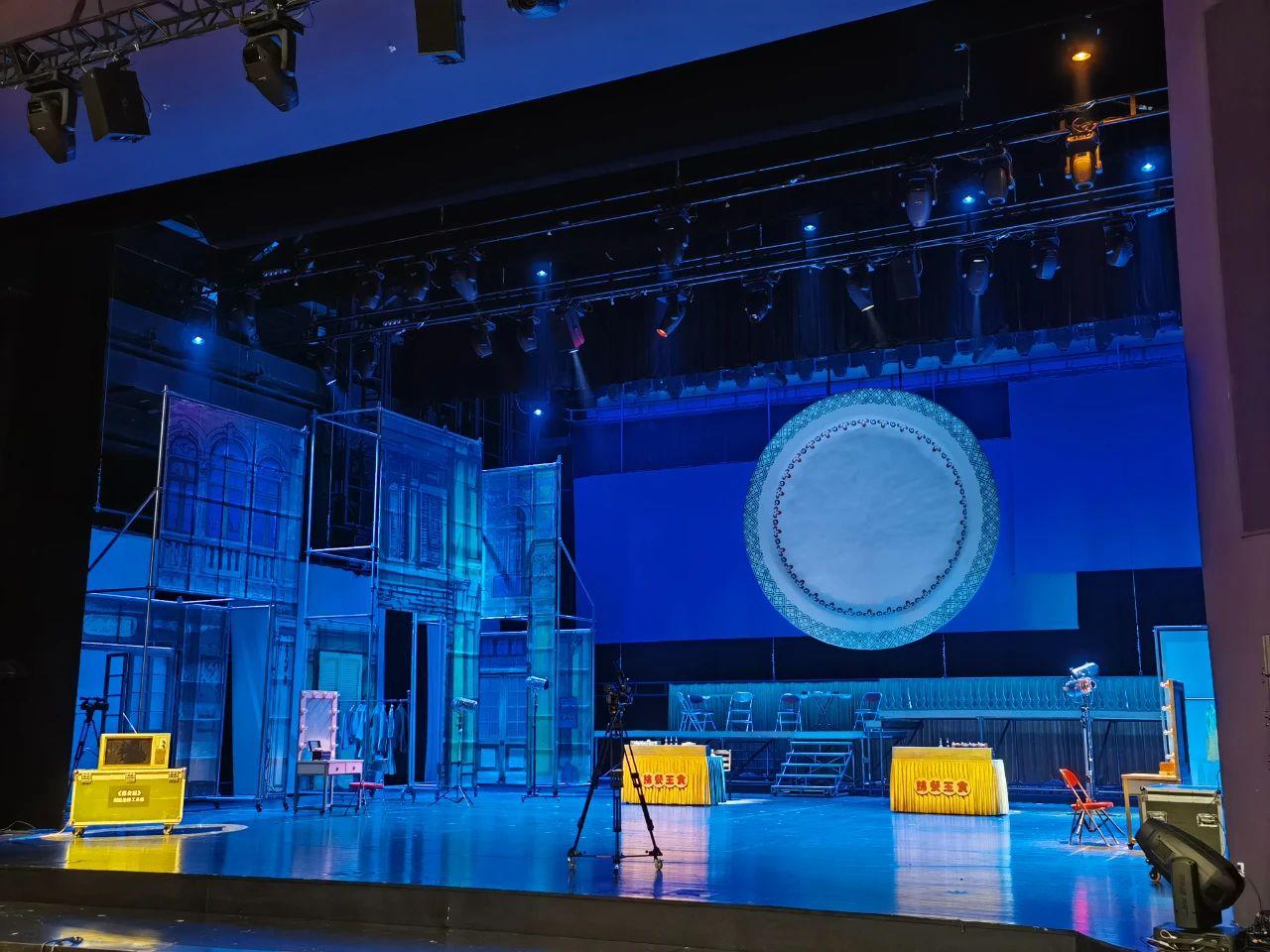 舞臺(tái)上采用廣彩瓷紋樣投影,時(shí)現(xiàn)字幕或特寫,延伸了舞臺(tái)表演;亦堪當(dāng)電視屏幕,是師徒名廚爭(zhēng)霸現(xiàn)場(chǎng);更是一輪圓月,時(shí)代風(fēng)云際會(huì),日中與夕食,月下共朝歌。有無(wú)相生間,承載的是中國(guó)人的道理。