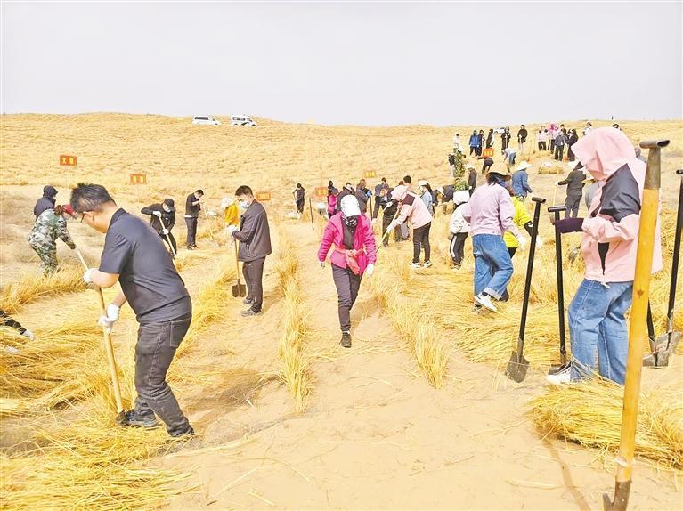 協(xié)同治理的突破,激活了多元力量的參與。平羅縣依托林長制搭建的協(xié)同平臺,將各級林長責(zé)任區(qū)與治沙任務(wù)精準(zhǔn)對接,通過建立黨建帶林建工作機(jī)制,引進(jìn)社會資本參與后期養(yǎng)護(hù)管理。“4月25日,金融系統(tǒng)的研學(xué)團(tuán)隊(duì)來這和我們一起扎草方格、種樹苗,大家干得熱火朝天!此外,青年志愿者隊(duì)伍也絡(luò)繹不絕……”王建保說,“林長制就像一根‘指揮棒’,將各方力量擰成一股繩,讓治沙從‘單打獨(dú)斗’升級為全社會協(xié)同作戰(zhàn)?!?/p>