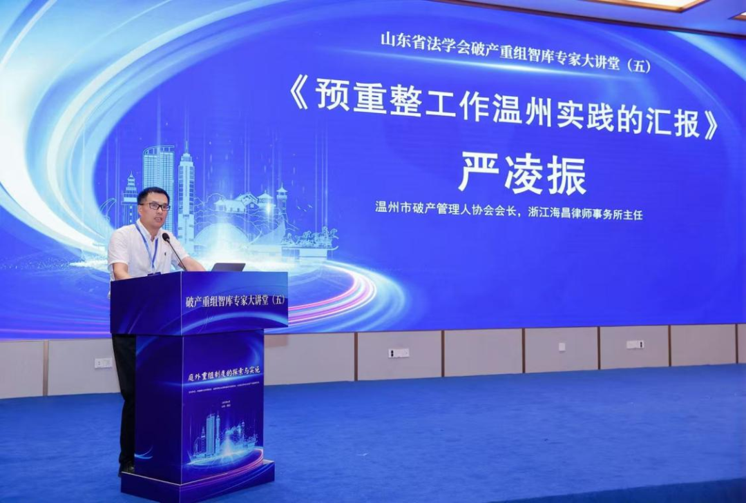 溫州市破產管理人協(xié)會會長、浙江海昌律師事務所主任嚴凌振以《預重整工作溫州實踐的匯報》為題發(fā)言,從溫州預重整實踐背景出發(fā),重點介紹了預重整工作中的一些具體舉措:通過府院聯(lián)動協(xié)同推進,建立府院聯(lián)席會議制度,出臺多個府院聯(lián)席會議紀要,解決有關破產企業(yè)的稅收、信用修復等關鍵問題,助力企業(yè)“復原”; 政府成立專門機構具體負責企業(yè)預重整工作,創(chuàng)新出臺預重整工作規(guī)程與預重整管理人選任工作辦法:探索信用修復機制,首創(chuàng)征信系統(tǒng)“大事記”,隔斷原有失信記錄;在預重整階段提前完成重整核心工作,將預重整的成效帶入重整程序,實現(xiàn)預重整與正式重整的有效銜接等。溫州推進預重整工作的核心,是將庭外重組與司法重整銜接,通過政府主導、法院監(jiān)督、多方協(xié)商,縮短重整周期并提高清償率,以高效拯救有再生價值的企業(yè)得以成功重生與持續(xù)發(fā)展:為困境企業(yè)的涅槃重生提供了有效路徑,同時也避免了擔保鏈風險擴散,為區(qū)域經濟穩(wěn)定發(fā)展做出了貢獻。