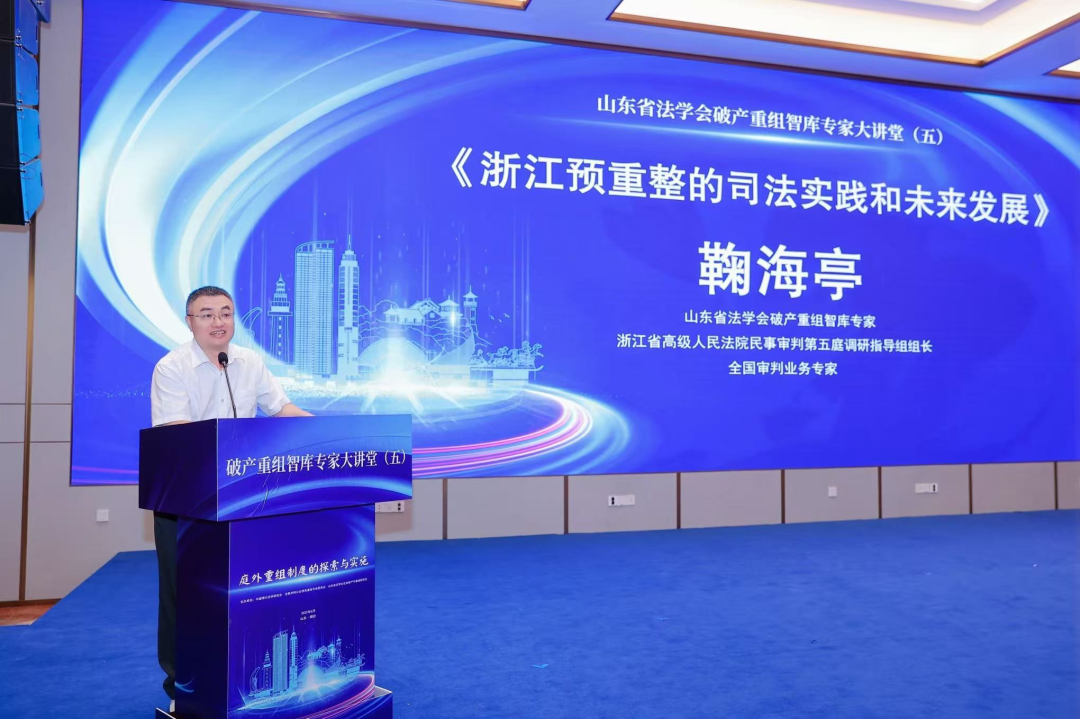 山東省法學會破產重組智庫專家、浙江省高級人民法院民事審判第五庭調研指導組組長、全國審判業(yè)務專家鞠海亭作《浙江企業(yè)預重整的司法實踐和未來發(fā)展》專題發(fā)言,介紹了浙江省高院在制定企業(yè)預重整規(guī)范性意見中的探索以及浙江溫州、金華和杭州等地方法院的相關探索、實施效果和存在的問題,強調了在企業(yè)預重整案件中管理人市場化選擇的重要性、破產企業(yè)財產保全措施的必要性、打擊破產“逃廢債”行為的難點與對策,以及個人債務集中清理案件審理中遇到的困難、問題以及對策等。