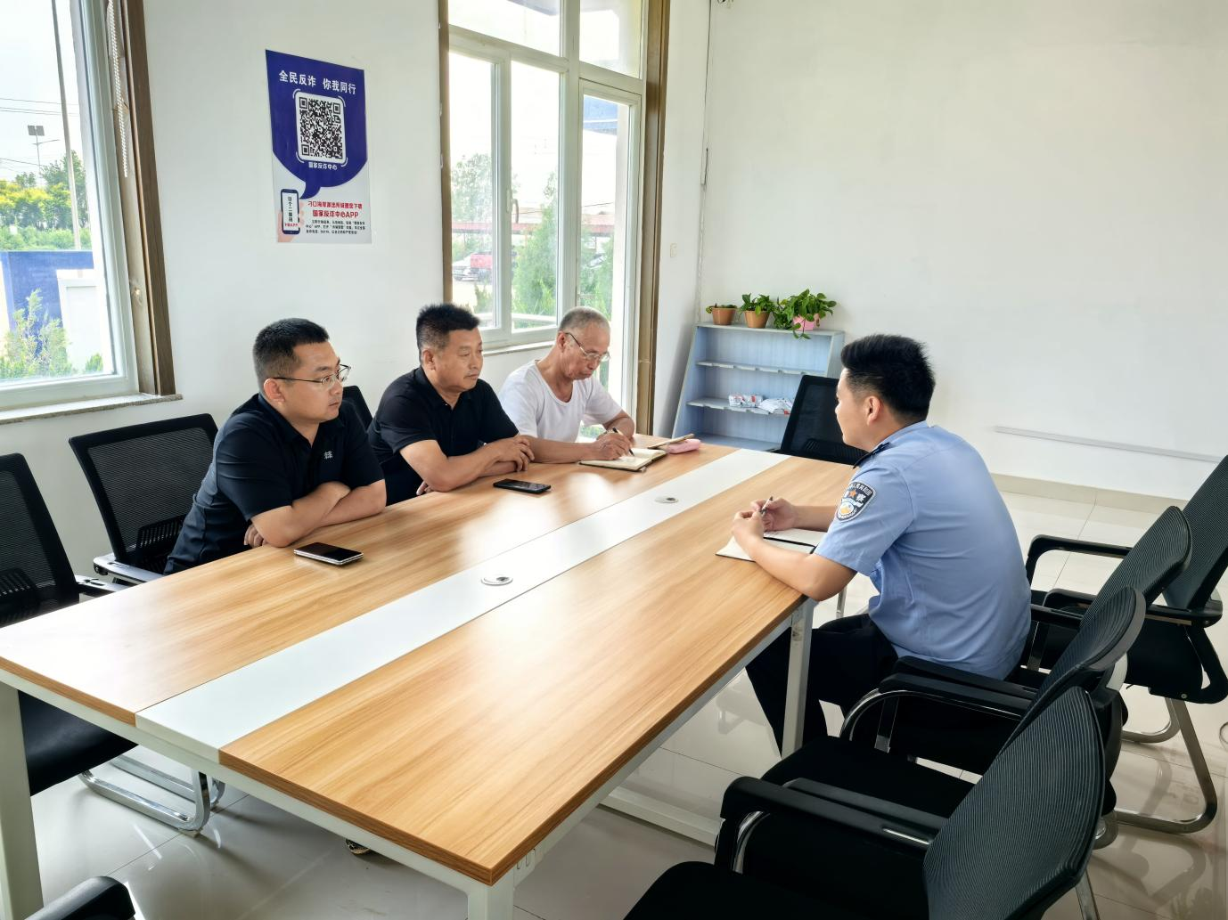 刁口鄉(xiāng)派出所與鎮(zhèn)村干部、網(wǎng)格員等“警網(wǎng)融合”隊伍定期召開工作會議