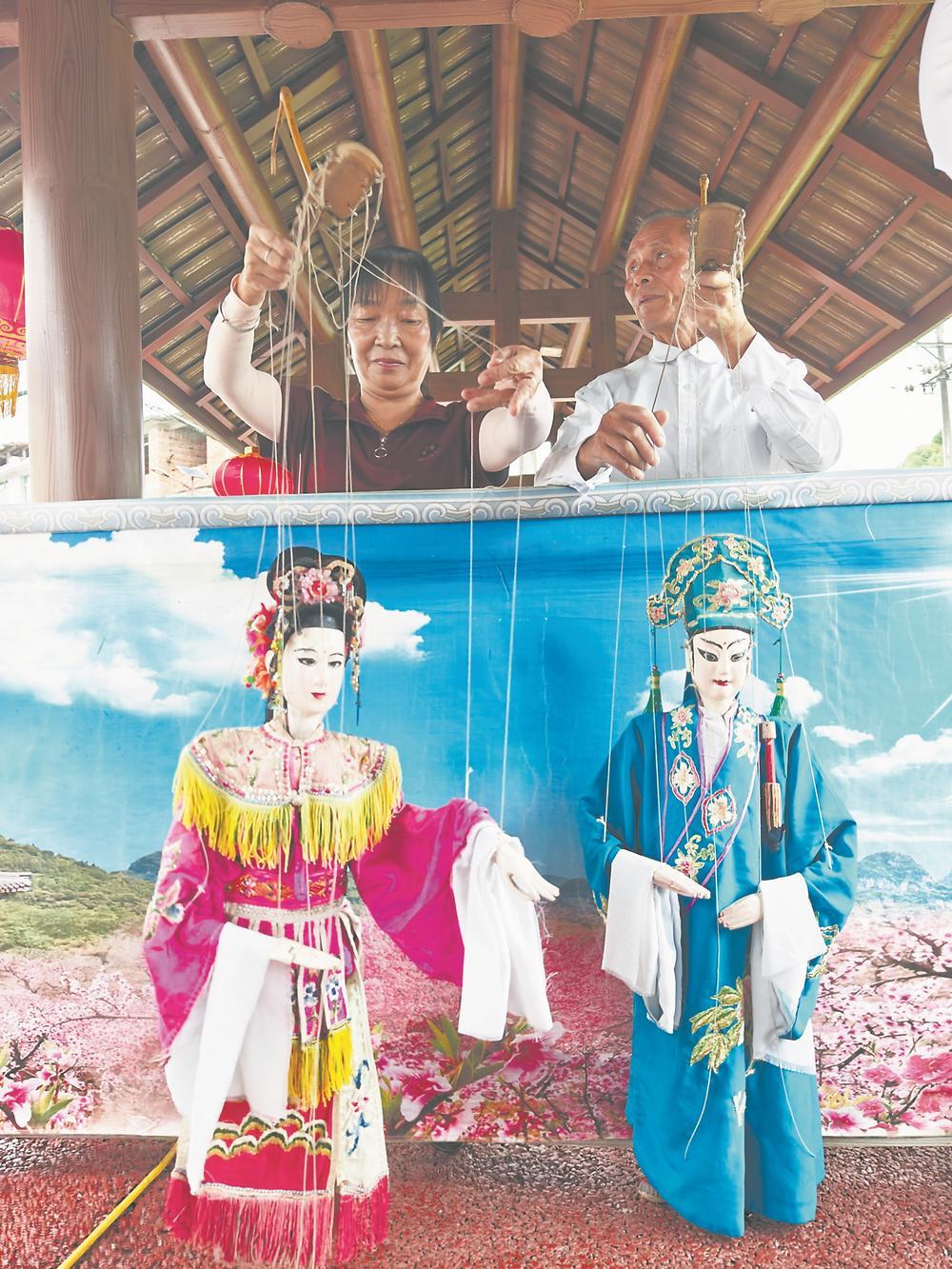 在建寧縣中畬村,文藝志愿者帶來木偶戲表演。