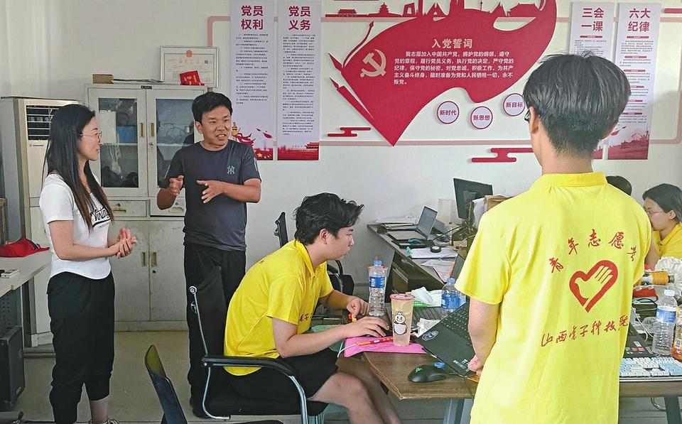 白冰(左二)指導(dǎo)大學(xué)生開(kāi)展暑期社會(huì)實(shí)踐。記者 張志剛 攝
