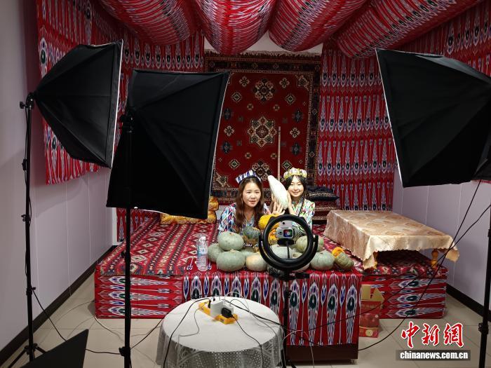 “直播間所見(jiàn)即所得!粉不粉?來(lái),你們看看!”新疆阿克蘇市電商產(chǎn)業(yè)園的一個(gè)直播間里,主播雨桐正和搭檔一起賣南瓜,她穿著維吾爾族服飾,一邊用勺子刮著粉糯的南瓜一邊激情澎湃地介紹。
