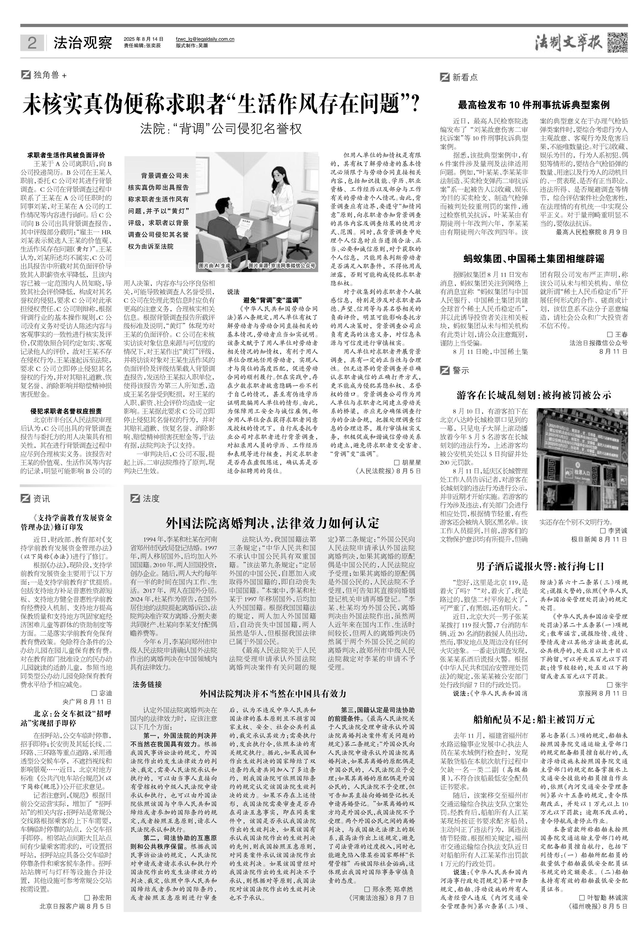2025年8月14日《法制文萃報》總第2868期2版