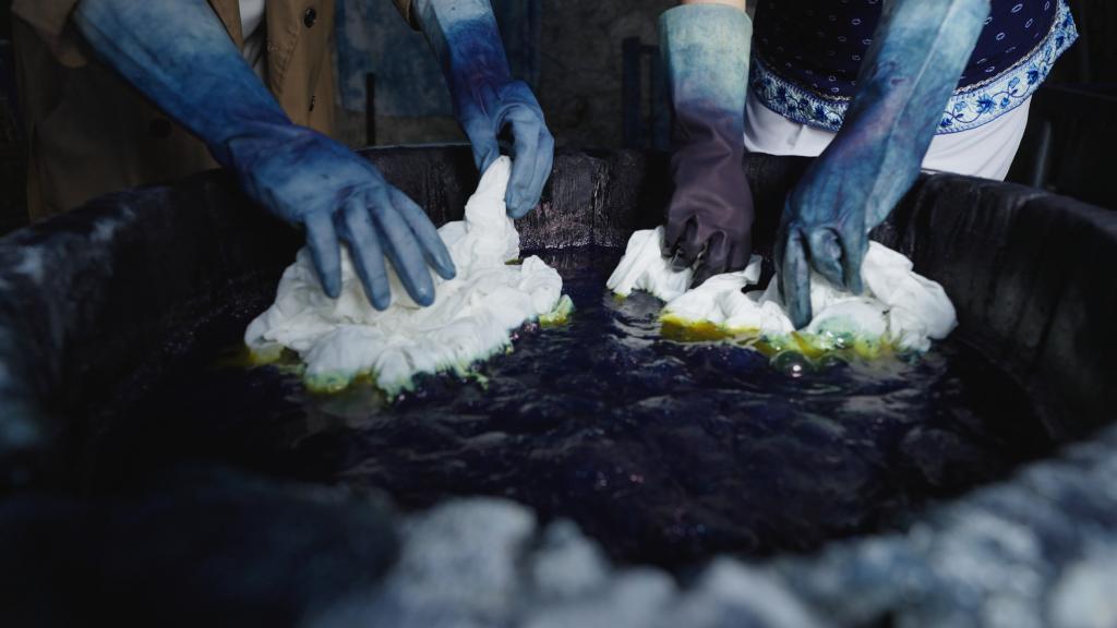 甲馬以刀為筆,鐫刻古老祈愿;扎染則以線為縛,在棉布上染出詩意。在匠志集的百工館里,陳列的一件件扎染制品吸引著眾多游客駐足。