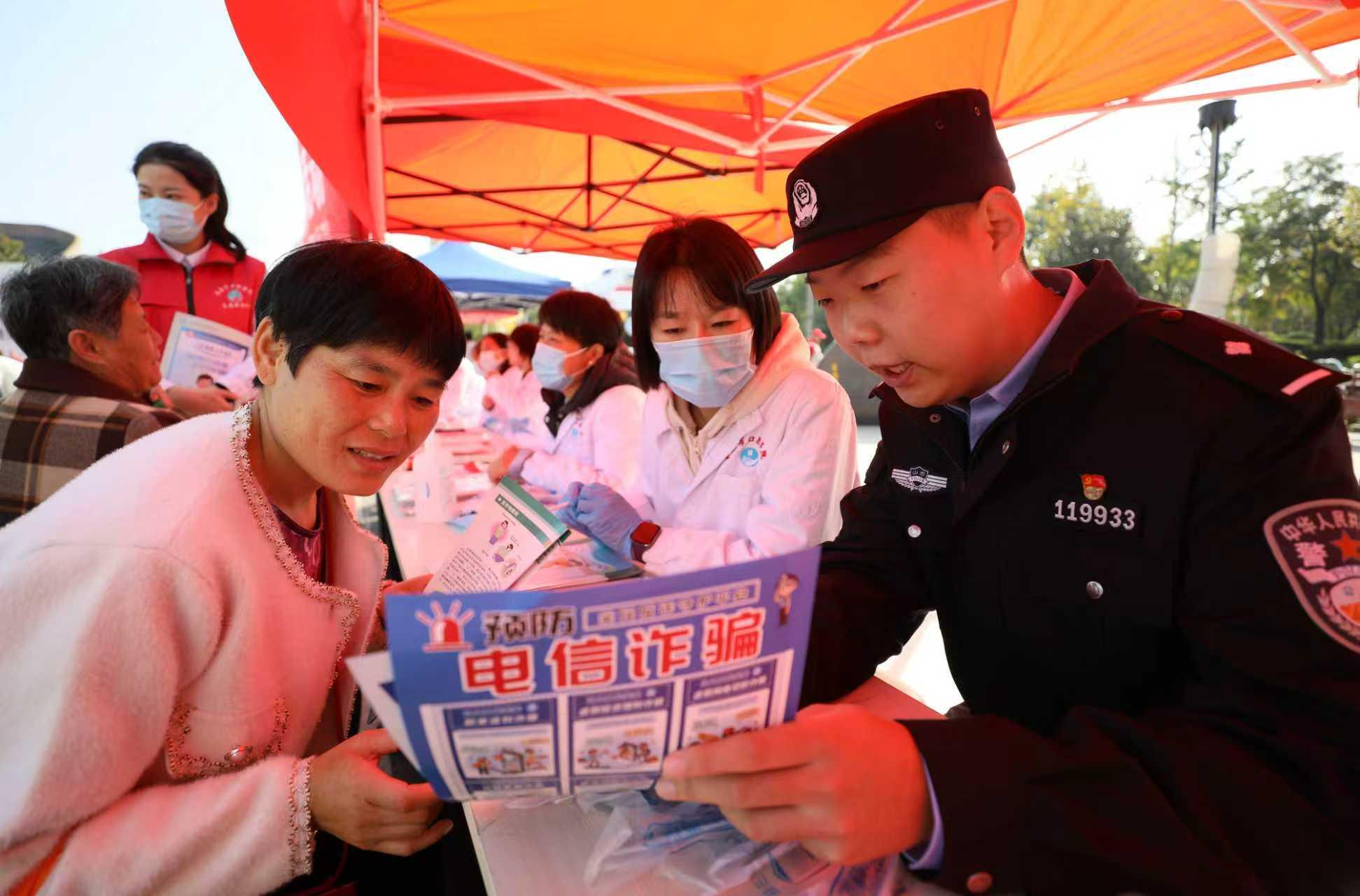 10月29日,在山東省棗莊市臺(tái)兒莊區(qū)興中廣場(chǎng),民警在向前來(lái)義診的市民普及防范電信網(wǎng)絡(luò)詐騙知識(shí)。當(dāng)日是農(nóng)歷九月初九,2025年棗莊市暨臺(tái)兒莊區(qū)“敬老月”重陽(yáng)節(jié)健康義診活動(dòng)在此舉行,在做好為廣大居民義診的同時(shí),臺(tái)兒莊區(qū)衛(wèi)生健康局邀請(qǐng)臺(tái)兒莊公安分局反詐民警,向前來(lái)義診的市民發(fā)放防范電信網(wǎng)絡(luò)詐騙宣傳彩頁(yè),普及相關(guān)知識(shí),告訴大家在就醫(yī)就診過(guò)程中要切實(shí)提高電信網(wǎng)絡(luò)詐騙防范意識(shí)。(山東省棗莊市公安局臺(tái)兒莊分局 張嚴(yán)新)