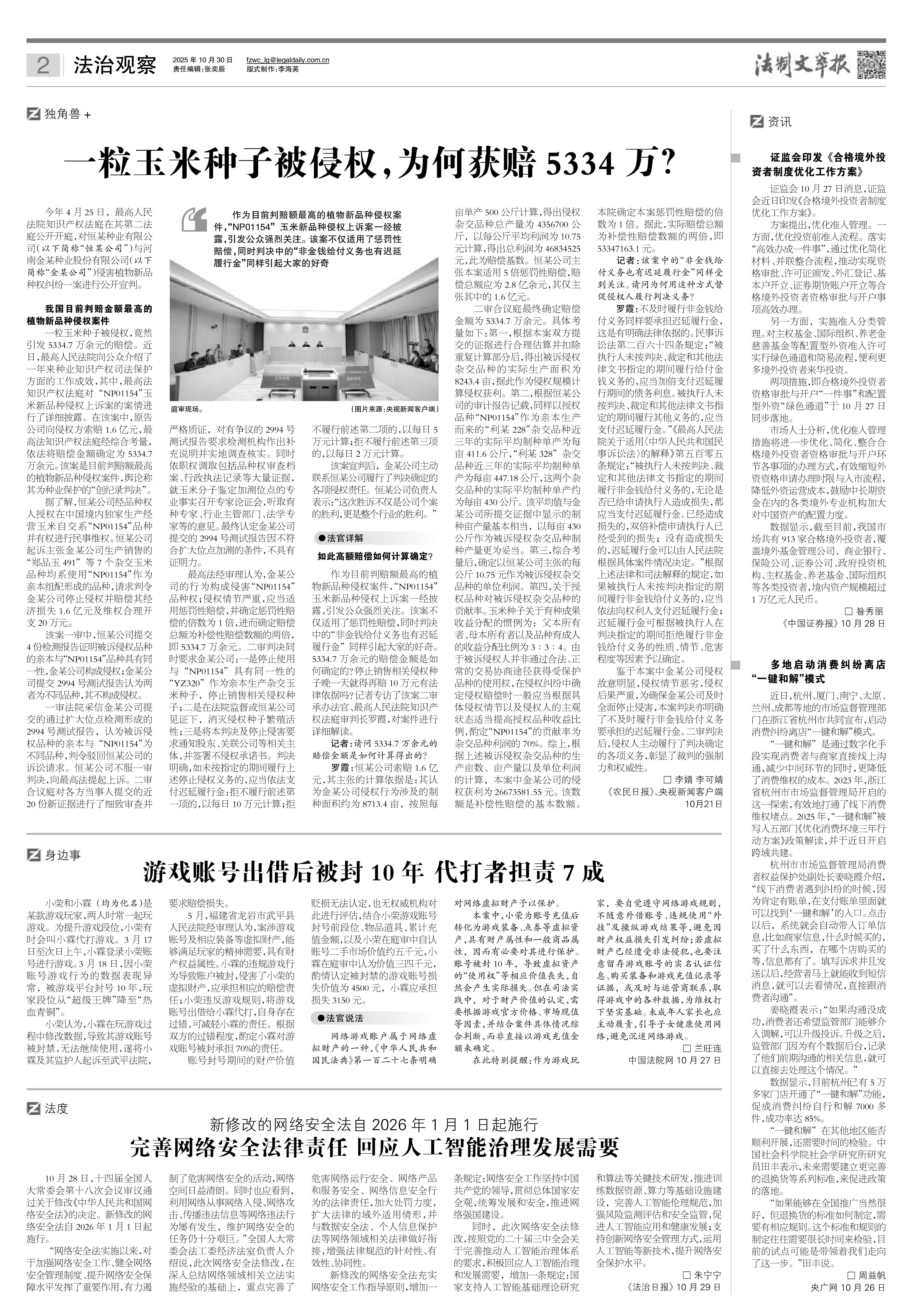 2025年10月30日《法制文萃報》總第2878期2版