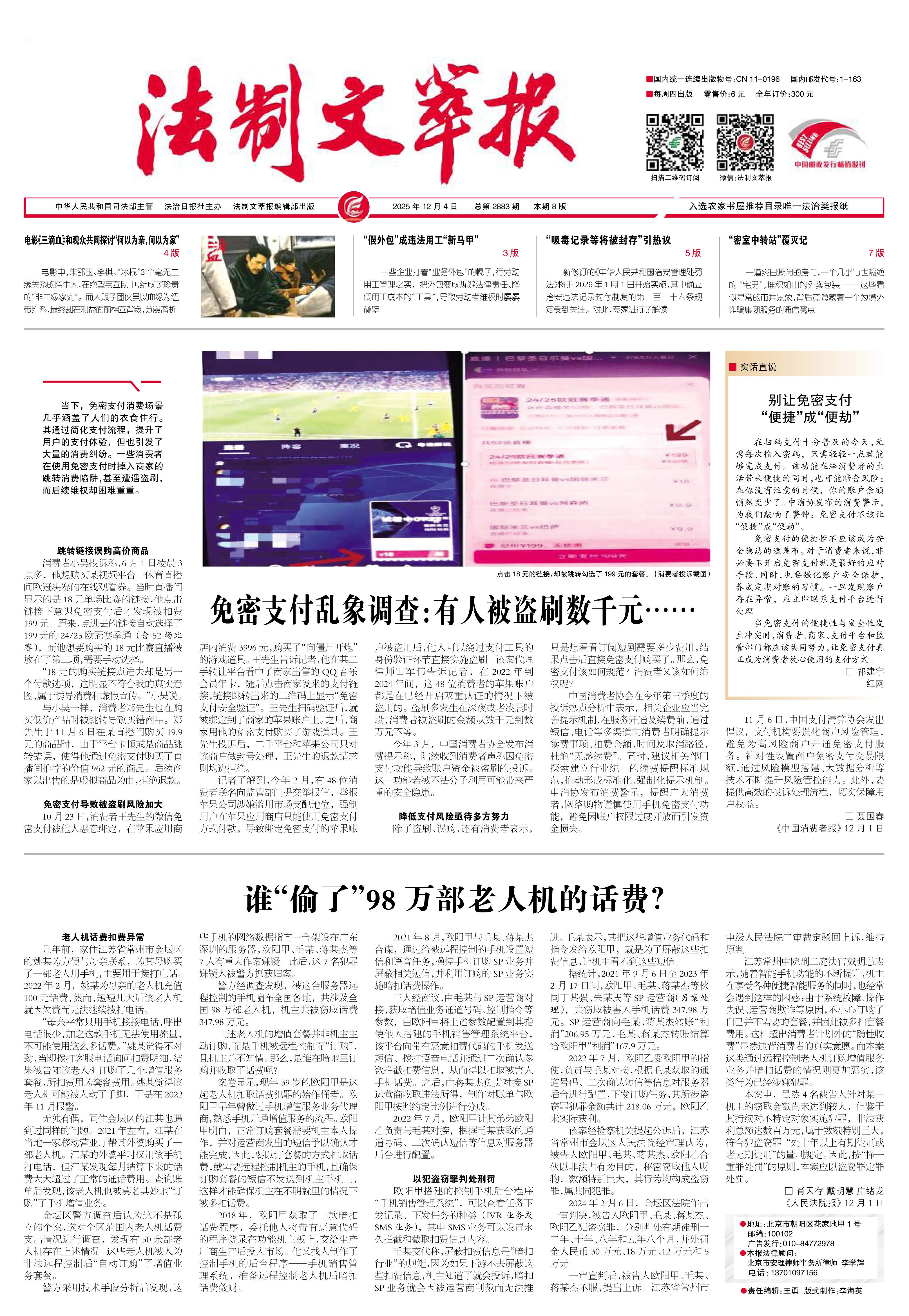2025年12月4日《法制文萃報》總第2883期1版