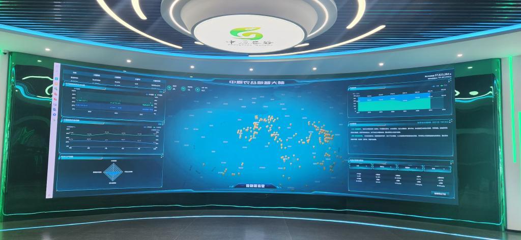 “中原農谷數(shù)智大腦”的大屏幕上,顯示著各種數(shù)據(jù)。(受訪者供圖)