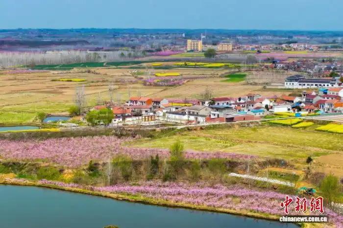航拍湖北棗陽熊集鎮(zhèn)萬畝桃園。(無人機(jī)照片)張倩龍 攝