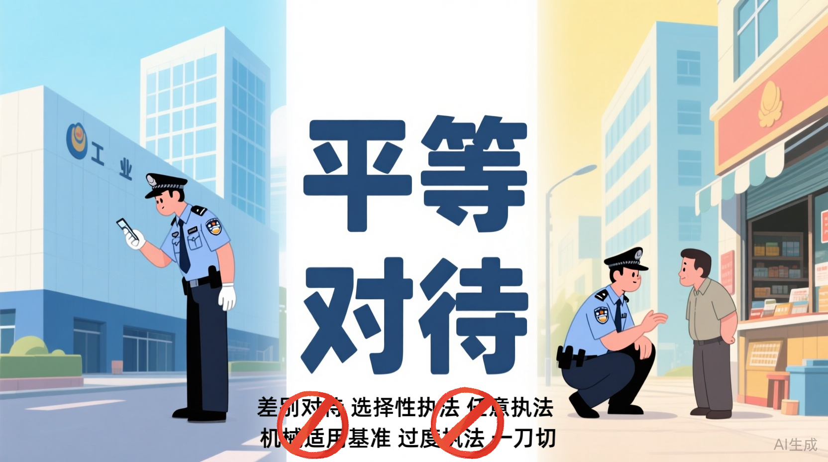 堅持平等對待當(dāng)事人。行使行政裁量權(quán)應(yīng)當(dāng)符合法律目的,排除不相關(guān)因素的干擾,所采取的措施和手段應(yīng)當(dāng)必要、適當(dāng),應(yīng)當(dāng)盡可能避免采用損害當(dāng)事人權(quán)益的方式。嚴(yán)禁刻意差別對待當(dāng)事人。嚴(yán)禁選擇性執(zhí)法、任性執(zhí)法。嚴(yán)禁機械適用行政裁量權(quán)基準(zhǔn)。嚴(yán)禁過度執(zhí)法、“一刀切”執(zhí)法。