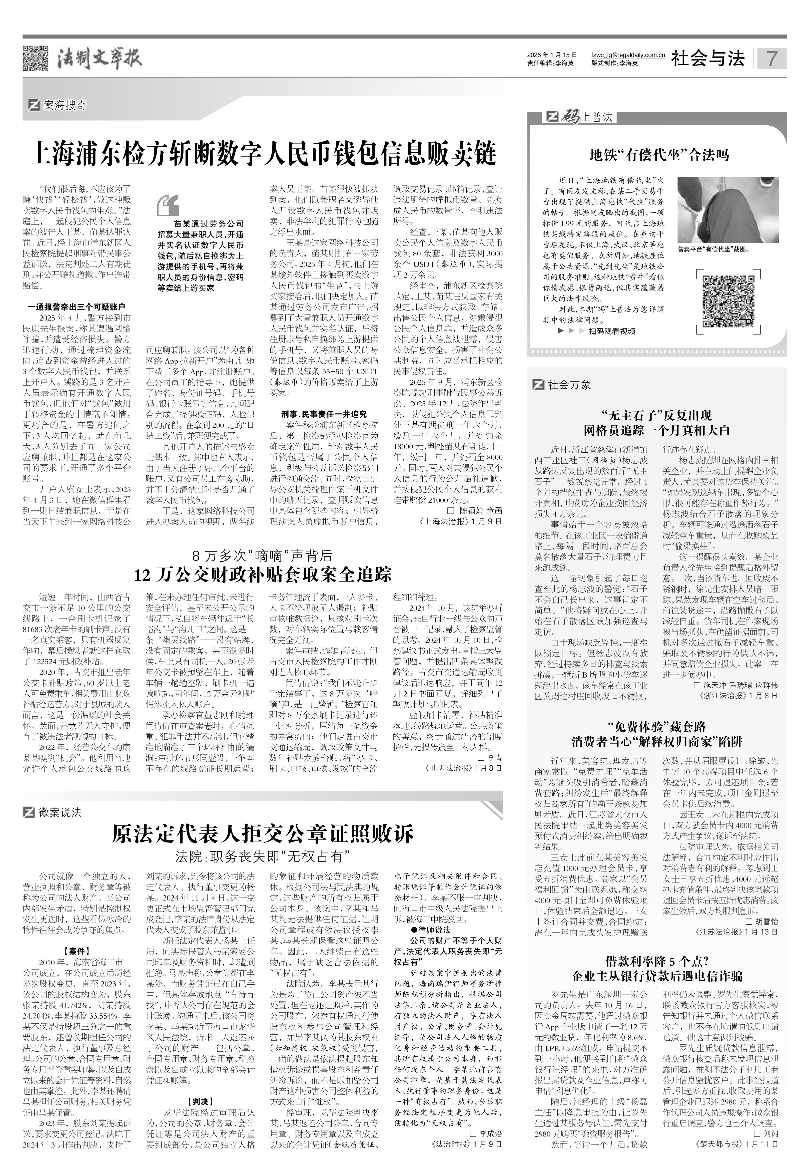 2026年1月15日《法制文萃報》總第2889期7版