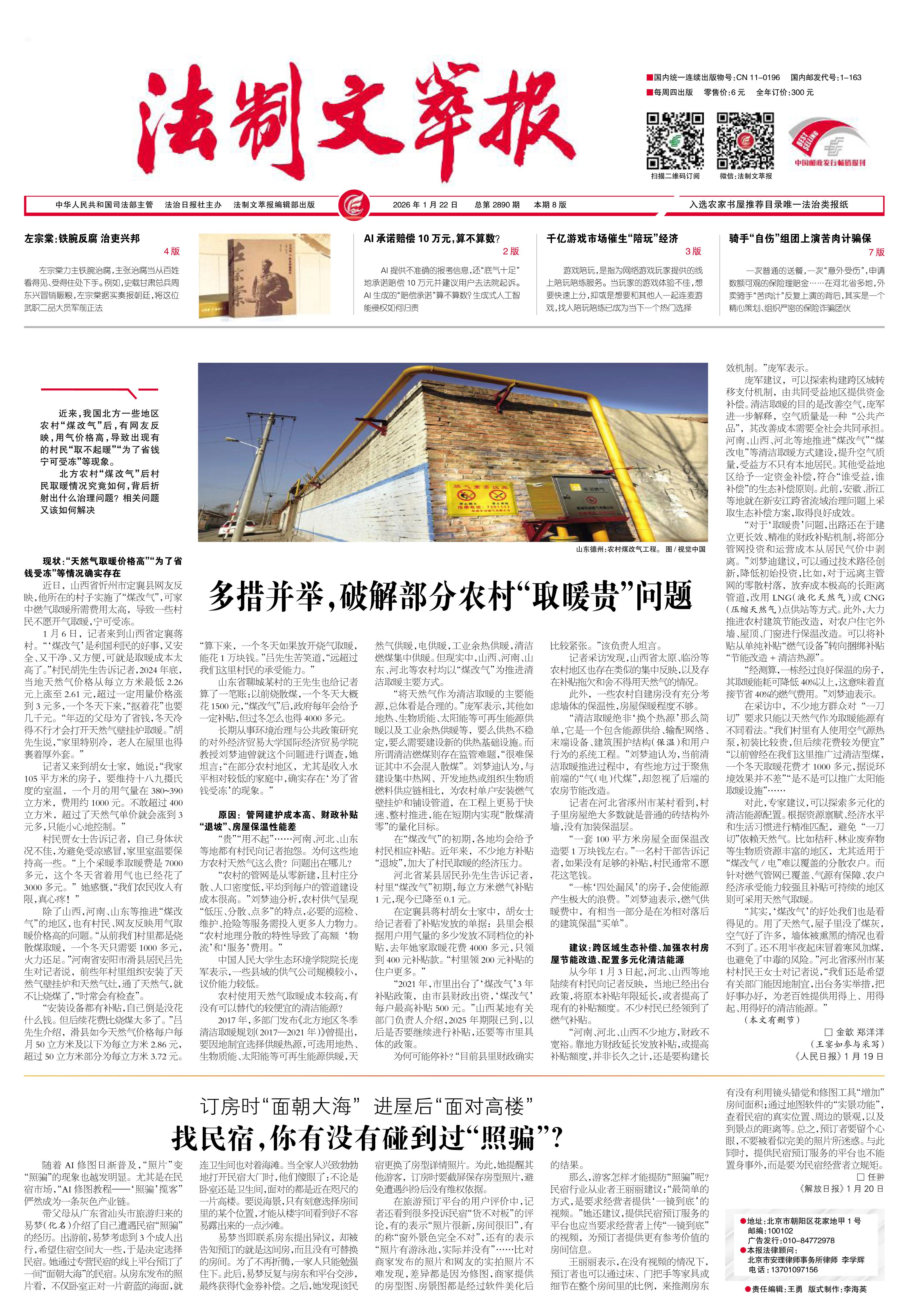 2026年1月22日《法制文萃報》總第2890期1版