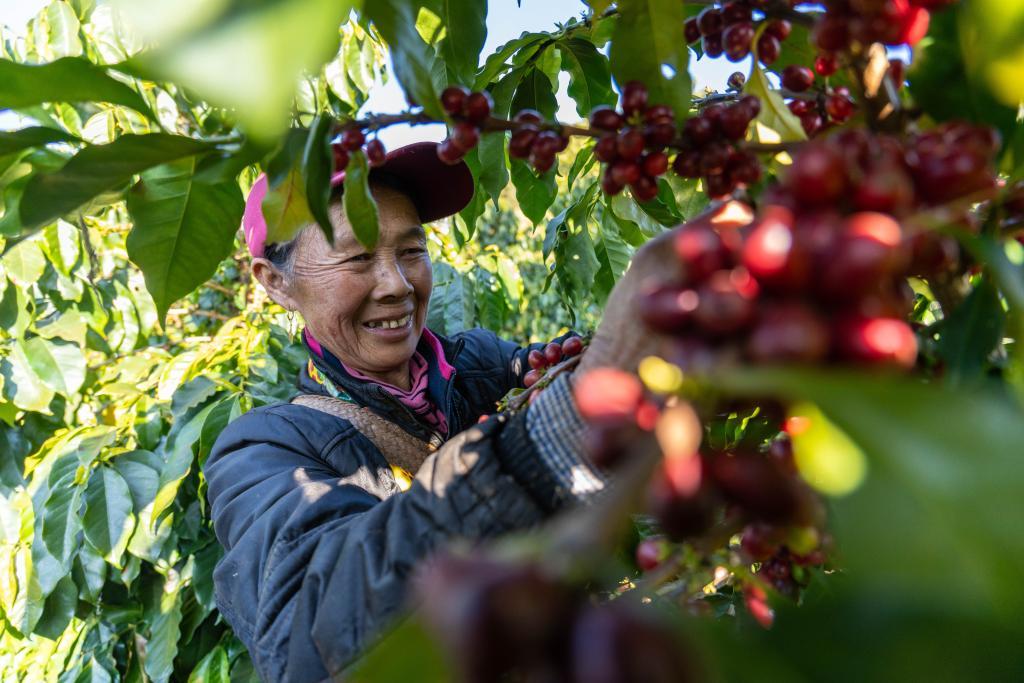 2026年1月23日,咖農(nóng)在云南省臨滄市雙江縣沙河鄉(xiāng)陳家寨村云頂筑巢咖啡莊園采摘咖啡果。新華社記者高詠薇 攝