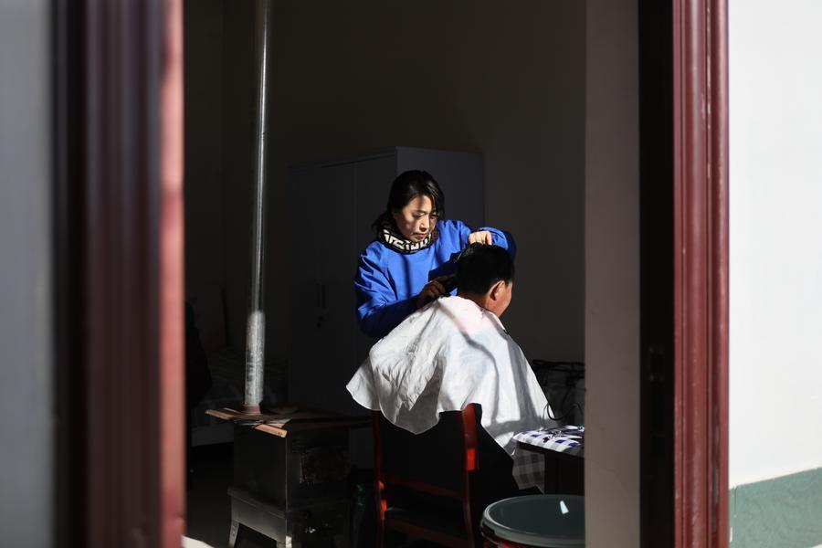 圖為袁雪玲正在為村民理發(fā)。新華社記者 張睿 攝