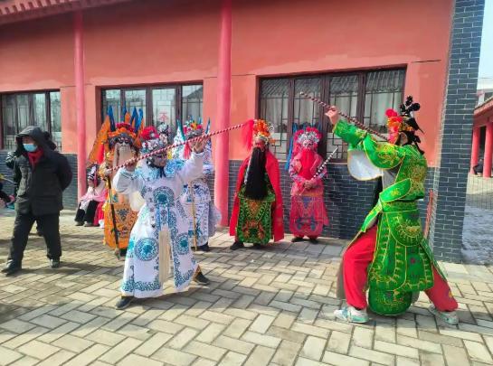 在靈臺縣什字鎮(zhèn)的文化廣場上,兩位初中生正在排練武社火