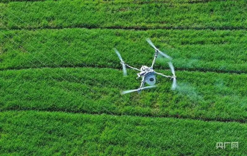 種糧大戶張?zhí)喜倏責o人機施肥,促進小麥生長。(央廣網(wǎng)發(fā) 蜀山區(qū)委宣傳部供圖)