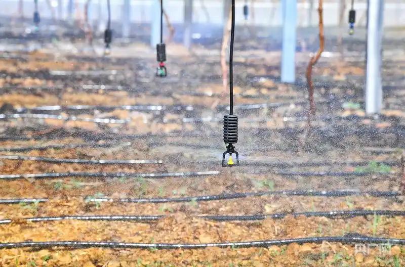 袁中社區(qū)一處農業(yè)大棚內使用水肥一體化無人噴灌系統(tǒng)。(央廣網(wǎng)發(fā) 蜀山區(qū)委宣傳部供圖)