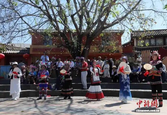 在仁和區(qū)迤沙拉村,紅墻窄巷間,談經(jīng)古樂(lè)婉轉(zhuǎn)悠揚(yáng)。這門有數(shù)百年歷史的技藝,如今是游客最喜愛(ài)的文化體驗(yàn)?!懊Φ臅r(shí)候,一天能演三四場(chǎng)?!逼哐妥謇先嗣飧徽f(shuō)。