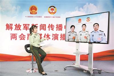 本報(bào)記者吳敏通過(guò)視頻連線方式采訪軍隊(duì)人大代表。蘇鶴 攝