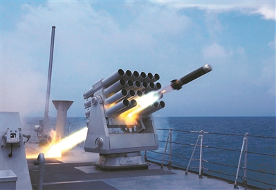 “開(kāi)火!”占領(lǐng)有利攻擊陣位后,玉林艦指揮員果斷下達(dá)作戰(zhàn)命令。“轟!轟!轟!”一枚枚炮彈裹挾著濃煙沖出炮膛,直撲目標(biāo)。
