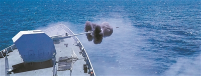 圖①:呼和浩特艦進(jìn)行主炮對(duì)海射擊演練。