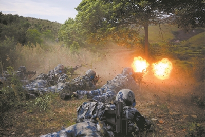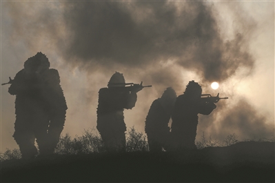 圖⑤:硝煙彌漫,官兵向目標(biāo)地域滲透偵察。