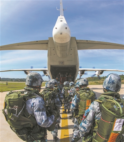 凌晨,急促的哨音打破了營區(qū)寂靜。任務(wù)分隊官兵快速請領(lǐng)武器裝備和傘具,摩托化機動至某軍用機場。