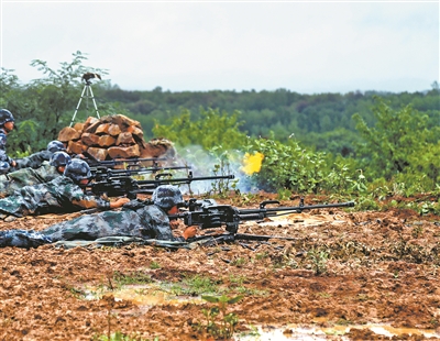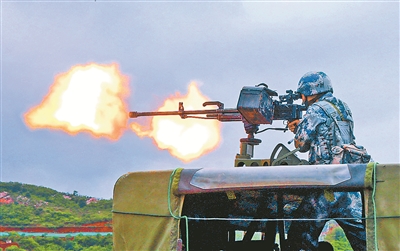 圖②:重機槍對“敵”實施火力壓制。