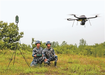 圖④:偵察分隊操縱無人機實施偵察。