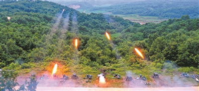 “預備,放!”指揮員一聲令下,各火力分隊在不同射擊陣地,采取多彈種、多梯次配置方式實施打擊。瞬時,一條條“火龍”噴射而出,直撲目標。偵察分隊及時收集目標毀傷情況,各炮位據(jù)此不斷修正射擊諸元,提高打擊精度。