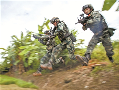 密林深處,一伙“暴恐分子”挾持人質(zhì)正在逃竄。特戰(zhàn)隊(duì)員兵分兩路,夾擊追剿。一陣槍聲過(guò)后,“暴恐分子”被悉數(shù)擊斃,人質(zhì)成功獲救。這是武警云南總隊(duì)某支隊(duì)機(jī)動(dòng)一中隊(duì)實(shí)戰(zhàn)化練兵的一幕景象。