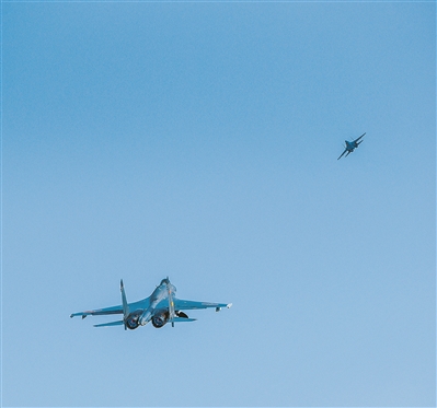 晴空萬里,空軍航空兵某團多架戰(zhàn)鷹呼嘯而起,進行自由空戰(zhàn)對抗演練。