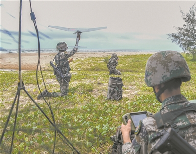 無人機偵察組快速搶占有利地形、開辟起降場、規(guī)劃航線……孰料升空不久,無人偵察機突遇強風(fēng),機身搖擺不定,監(jiān)視器畫面模糊不清。面對險情,操作手沉著操控?zé)o人機返航,重新標(biāo)定航向,成功實施空中偵察。