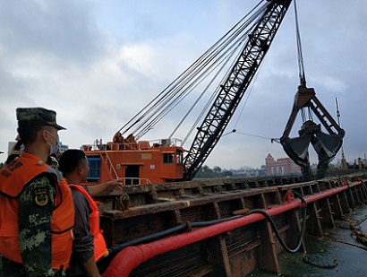 圖為嫌疑人現(xiàn)場指認(rèn)非法傾廢船舶。中國海警局供圖