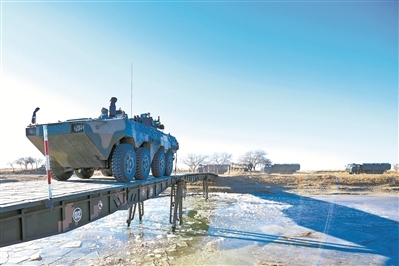 圖①:車輛裝備通過(guò)重型機(jī)械化橋。