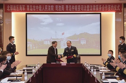 本報(bào)訊 通訊員傅劍飛 杜亞峰 王冠彪 近日,北部戰(zhàn)區(qū)海軍與山東省青島市中級(jí)人民法院、青島市司法局、青島仲裁委舉行軍地司法暨法律服務(wù)合作簽約儀式,正式確立軍地司法合作關(guān)系。