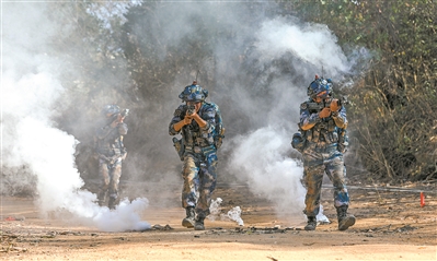 2月中旬,海軍陸戰(zhàn)隊(duì)某旅組織開展班戰(zhàn)術(shù)演練。翻山嶺、越溝壑、穿叢林……參訓(xùn)班組在野外陌生條件下連貫完成協(xié)同搜索、情報(bào)偵察和滲透破襲等行動(dòng)。