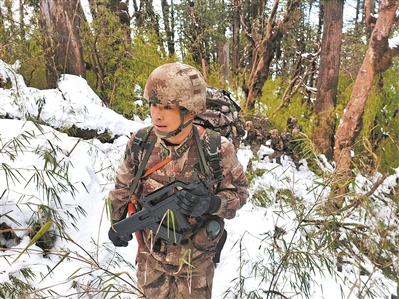 團(tuán)長(zhǎng)侯云走在隊(duì)伍的最前頭。任現(xiàn)職前,他曾兩次帶隊(duì)參加國(guó)際軍事比賽,征服過(guò)歐洲最高峰厄爾普魯士山,對(duì)登山很有經(jīng)驗(yàn)。當(dāng)團(tuán)長(zhǎng)后,每次參加武裝巡邏,他都在前面開路。