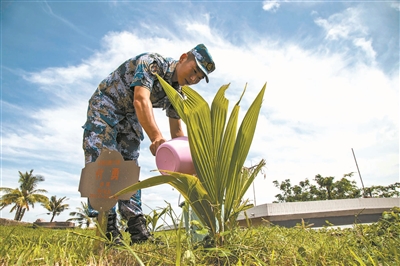 老炮依舊在,邊關(guān)展雄姿。今天,駐守在這個老哨位的,是被中央軍委授予“衛(wèi)國戍邊模范連”榮譽(yù)稱號的某邊防連。古炮臺一旁,花紅似火的木棉樹林,因在保衛(wèi)邊疆的戰(zhàn)斗中留下累累彈痕,獲得了“英雄林”的稱號;山坡上,一片挺拔堅韌的劍麻鋪展開來,寬厚的葉片刻寫著官兵們創(chuàng)作的一首首詩歌,在“英雄花”的掩映下成為一道獨特的風(fēng)景——劍麻詩林。