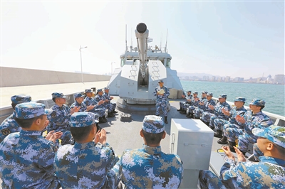 3月24日,海軍某護衛(wèi)艦支隊信陽艦開展“讀黨史 頌黨恩”討論交流活動,引導(dǎo)官兵感悟初心使命、汲取精神力量。王光杰 攝
