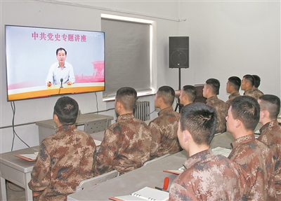 3月25日,戰(zhàn)略支援部隊某部組織官兵觀看中央黨校黨史學(xué)習(xí)輔導(dǎo)網(wǎng)絡(luò)課程。劉葆旭 攝