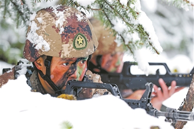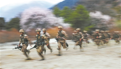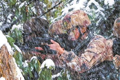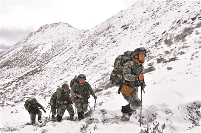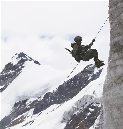 去年8月,馬乾帶領(lǐng)官兵負(fù)重攀爬5個(gè)小時(shí),登上一座海拔6000多米的雪山。登頂后,他們克服高山反應(yīng),迅速展開一場(chǎng)營(yíng)戰(zhàn)術(shù)演練。下山途中,又穿插進(jìn)行武裝泅渡、牽引橫越、夜間破襲戰(zhàn)斗等多個(gè)課目訓(xùn)練,整個(gè)訓(xùn)練持續(xù)了兩天兩夜。