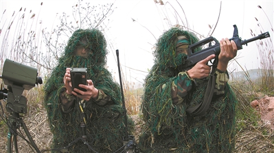 戰(zhàn)機(jī)呼嘯,勢如雷霆??罩芯庩犾`活變換隊形,充分利用各種遮蔽物實施超低空突防,在地面?zhèn)刹旆株牶透呖諢o人機(jī)的引導(dǎo)下順利抵達(dá)戰(zhàn)場,對“敵”目標(biāo)進(jìn)行精確打擊。