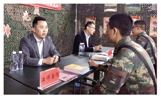 近日,96716部隊(duì)協(xié)調(diào)駐地司法機(jī)關(guān),聘請(qǐng)法律專家進(jìn)軍營(yíng)開展普法宣傳,為駐訓(xùn)官兵提供免費(fèi)法律援助服務(wù)。圖為專家一對(duì)一解答法律問題。