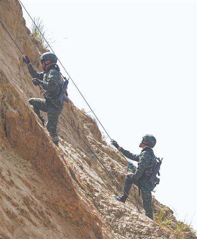 上午9時(shí)許,接到3名“暴恐分子”藏匿某地的“敵”情通報(bào)后,官兵全副武裝快速出動(dòng)。到達(dá)預(yù)定地域后,官兵隨即展開戰(zhàn)斗隊(duì)形,偵察組利用無人機(jī)、遠(yuǎn)程望遠(yuǎn)鏡等設(shè)備展開偵察;狙擊組快速占領(lǐng)制高點(diǎn),尋找最佳狙擊點(diǎn)位;突擊組進(jìn)入戰(zhàn)斗準(zhǔn)備,隨時(shí)待命投入捕殲戰(zhàn)斗……