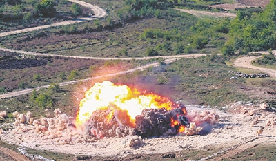 完成首輪打擊,戰(zhàn)機迅速躍升,大機動脫離直插云霄。數(shù)分鐘后,戰(zhàn)機再次進入攻擊航線。到達(dá)最佳攻擊陣位,飛行員果斷按下發(fā)射按鈕,兩枚炸彈脫離戰(zhàn)機后落向靶標(biāo),地面瞬間騰起一團火焰和氣浪。