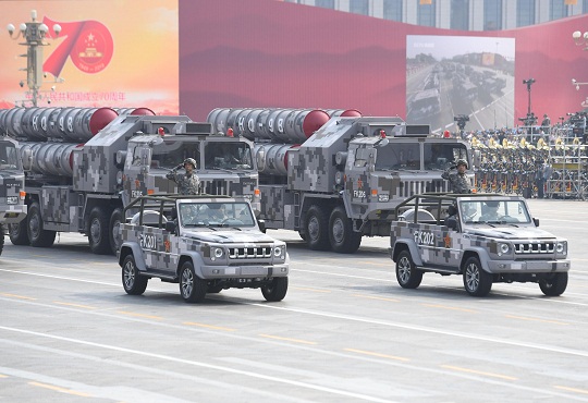 2019年10月1日上午,慶祝中華人民共和國成立70周年大會在北京天安門廣場隆重舉行。圖為接受檢閱的地空導彈第1方隊。新華社記者 張晨霖 攝